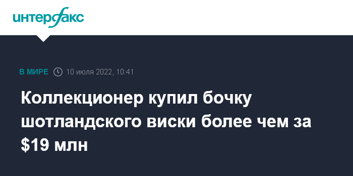 Москва. 10 июля. INTERFAX.RU - Коллекционер из Азии приобрел бочку редкого шотландского виски за 16 млн фунтов (около $19,3 млн) - это мировой рекорд, сообщает The Financial Times.