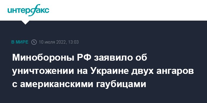Москва. 10 июля. INTERFAX.RU - Российские военные уничтожили два ангара с американскими гаубицами М777 в Константиновке, заявили в Минобороны РФ.
