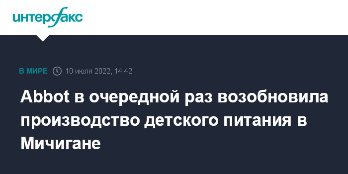 Abbot в очередной раз возобновила производство детского питания в Мичигане