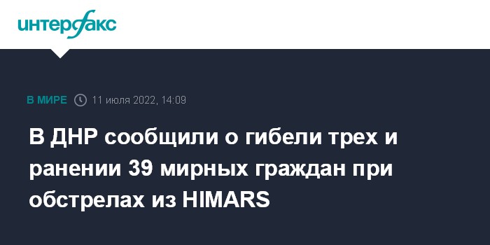 В ДНР сообщили о гибели трех и ранении 39 мирных граждан при обстрелах из HIMARS