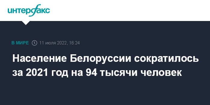 Москва. 11 июля. INTERFAX.RU - В 2021 году население Белоруссии сократилось на 94,1 тысячи человек и на 1 января 2022 года составляла 9 255 500 человек, сообщил Национальный статистический комитет Белоруссии.