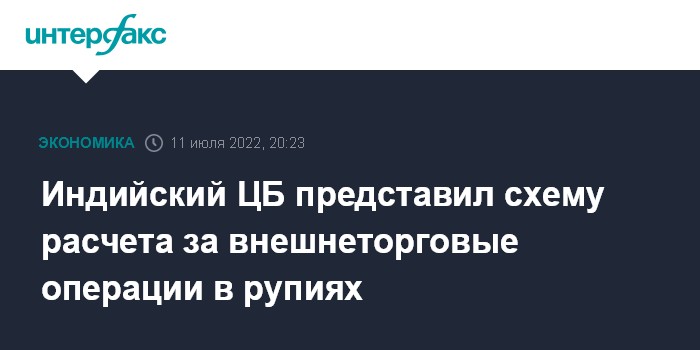 Москва. 11 июля. INTERFAX.RU - Резервный банк Индии (ЦБ страны) представил механизм расчета за внешнеторговые операции в рупиях, пишет Times of India.