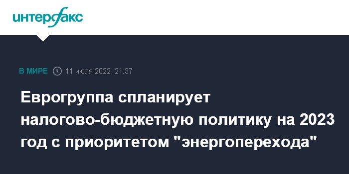 Еврогруппа спланирует налогово-бюджетную политику на 2023 год с приоритетом "энергоперехода"