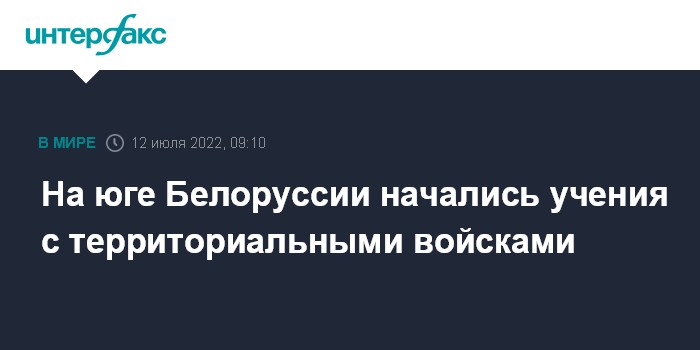 Москва. 12 июля. INTERFAX.RU - На юге Белоруссии с 12 по 14 июля будет проходить командно-штабное учение с территориальными войсками Жлообинского района, в его ходе будет отработано выполнение мер военного положения, сообщила пресс-служба Минобороны страны.