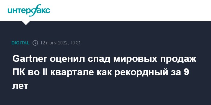 Москва. 12 июля. INTERFAX.RU - Во II квартале 2022 года поставки персональных компьютеров в мире упали на 12,6%, до 72 млн, это рекордное падение за девять лет на фоне геополитических и экономических трудностей, показали предварительные данные аналитической компании Gartner.