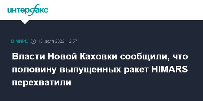 Власти Новой Каховки сообщили, что половину выпущенных ракет HIMARS перехватили