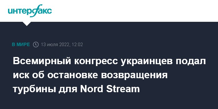 Всемирный конгресс украинцев подал иск об остановке возвращения турбины для Nord Stream