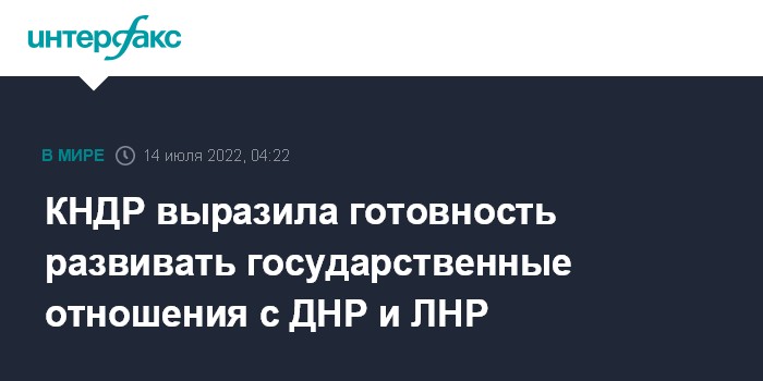 Москва. 14 июля. INTERFAX.RU - Пхеньян намерен развивать государственные отношения с Донецкой и Луганской народными республиками, сообщает ЦТАК.