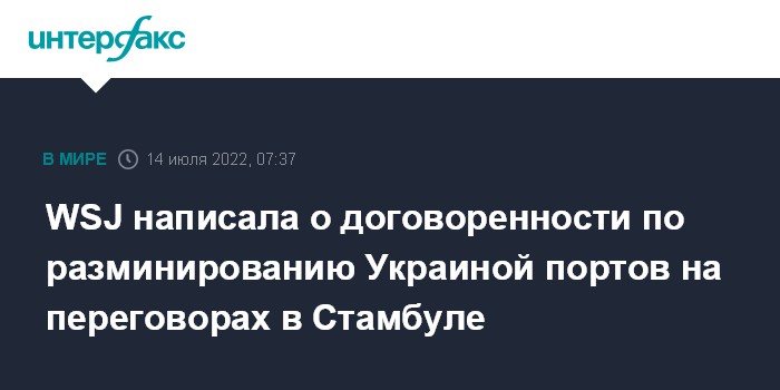 WSJ написала о договоренности по разминированию Украиной портов на переговорах в Стамбуле