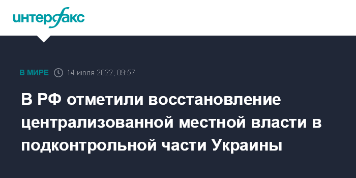 В РФ отметили восстановление централизованной местной власти в подконтрольной части Украины