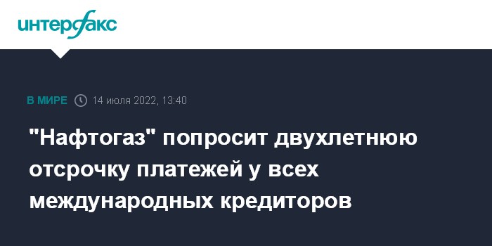 Москва. 14 июля. INTERFAX.RU - НАК "Нафтогаз Украины", в начале этой недели попросившая 2-летней отсрочки по выплате процентов и погашению еврооблигаций, обратится с подобным предложением ко всем другим международным кредиторам. Об этом говорится в биржевом сообщении эмитента еврооблигаций "Нафтогаза" Kondor Finance Plc.