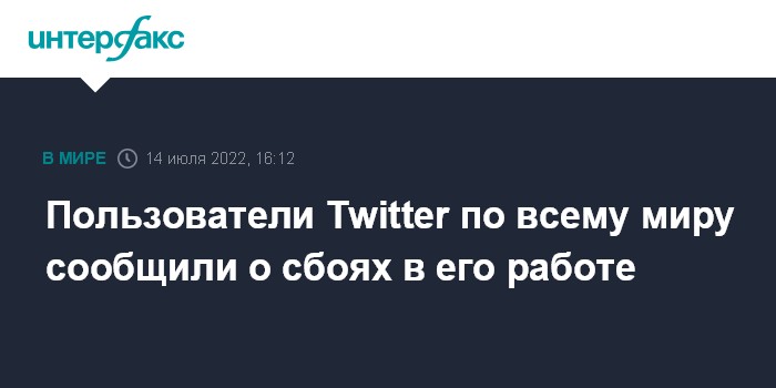 Москва. 14 июля. INTERFAX.RU - Проблемы в работе социальной сети Twitter фиксируются по всему миру, следует из данных сервиса Downdetector.