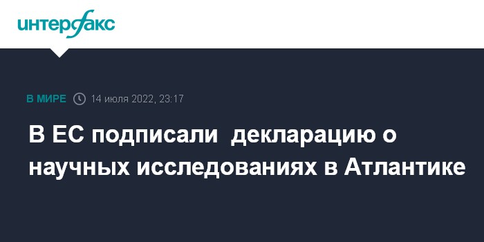 Москва. 14 июля. INTERFAX.RU - Европейская комиссия (ЕК) объявила в Брюсселе, что в четверг в Вашингтоне Евросоюз, Аргентина, Бразилия, Кабо-Верде, Канада, Марокко, США и Южная Африка подписали новую декларацию о научных исследованиях и инновациях в Атлантическом океане.