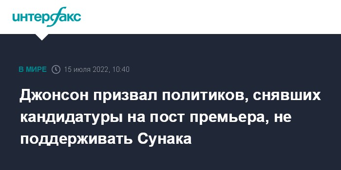 Однако, по словам одного из осведомленных источников The Times, Джонсон, по-видимому, благоприятно относится к кандидатуре главы МИД Лиз Трасс. Также он, как выяснилось, готов приветствовать на посту премьера и младшего министра по торговой политике Великобритании Пенни Мордонт, если она обгонит Сунака.