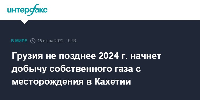Грузия не позднее 2024 г. начнет добычу собственного газа с месторождения в Кахетии