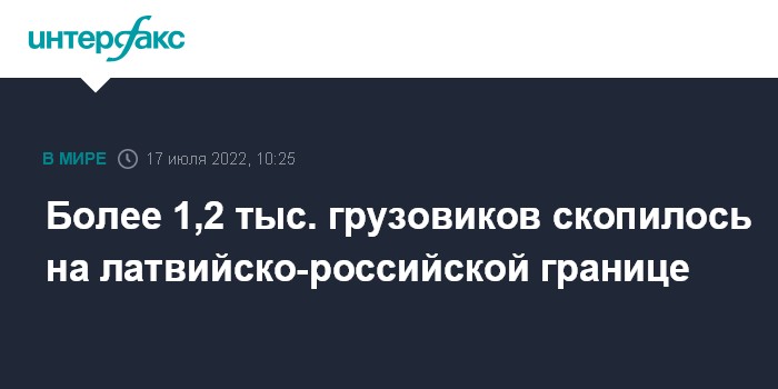 Москва. 17 июля. INTERFAX.RU - На латвийско-российской границе въезда в РФ ожидают 1 250 грузовиков, сообщает агентство BNS со ссылкой на данные Службы государственных доходов Латвии.