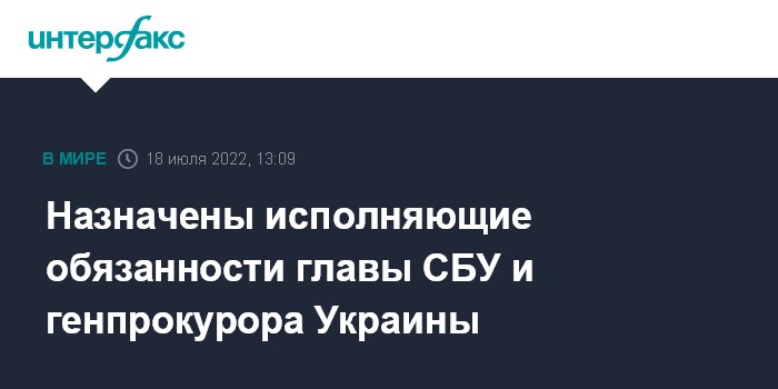 Москва. 18 июля. INTERFAX.RU - Президент Украины Владимир Зеленский подписал указы о назначении временно исполняющим обязанности главы Службы безопасности Украины Василия Малюка вместо Ивана Баканова и и.о. генпрокурора Украины Алексея Симоненко вместо Ирины Венедиктовой.