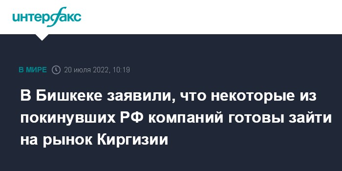 В Бишкеке заявили, что некоторые из покинувших РФ компаний готовы зайти на рынок Киргизии