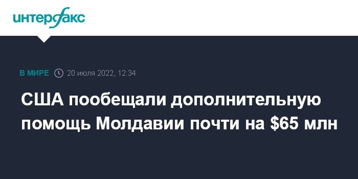 Москва. 20 июля. INTERFAX.RU - Государственный секретарь США Энтони Блинкен обещал Молдавии дополнительную помощь в размере почти $65 млн.