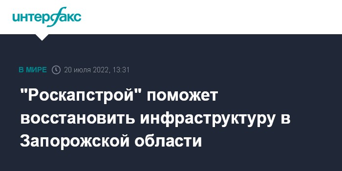 "Роскапстрой" поможет восстановить инфраструктуру в Запорожской области