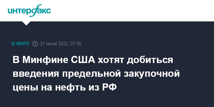 Москва. 21 июля. INTERFAX.RU - Замминистра финансов США Уолли Адейемо заявил о намерении добиться введения предельной закупочной цены для российской нефти к концу года.
