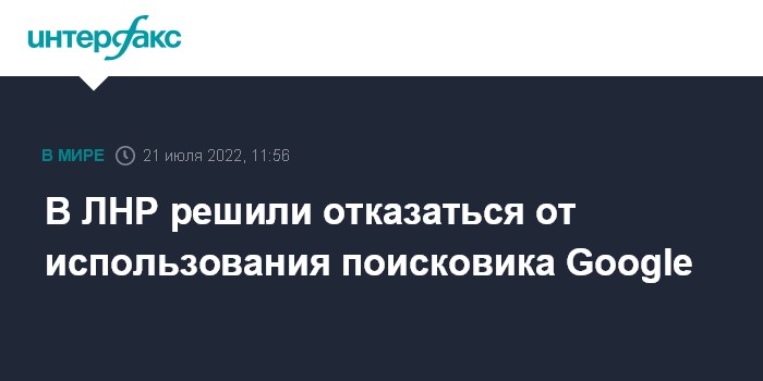Москва. 21 июля. INTERFAX.RU - Власти Луганской народной республики приняли решение отказаться от использования поискового сервиса Google на территории ЛНР, заявил глава республики Леонид Пасечник.