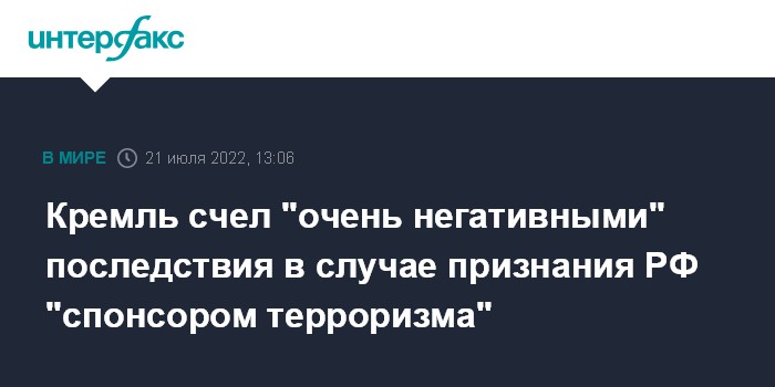 Кремль счел "очень негативными" последствия в случае признания РФ "спонсором терроризма"