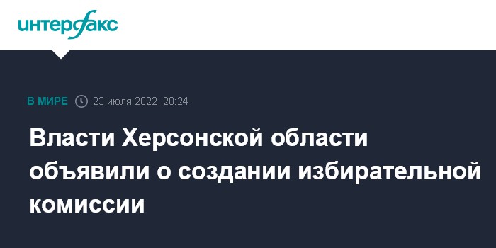 Москва. 23 июля. INTERFAX.RU - Избирательная комиссия создается в Херсонской области, сообщила в субботу временная администрация региона.