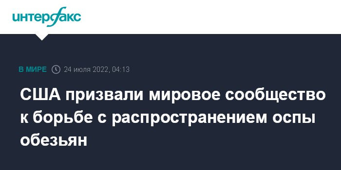 "Скоординированные международные ответные меры необходимы для прекращения распространения оспы обезьян, защиты сообществ, подверженных наибольшему риску заражения этой болезнью, и борьбы с нынешней вспышкой", - говорится в заявлении чиновника, распространенном Белым домом.