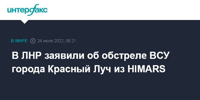 Москва. 24 июля. INTERFAX.RU - Вооруженные силы Украины в воскресенье ночью обстреляли подконтрольный Луганской народной республике город Красный Луч из реактивных систем залпового огня HIMARS, сообщает представительство ЛНР в Совместном центре по контролю и координации режима прекращения огня (СЦКК).