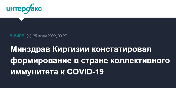 Минздрав Киргизии констатировал формирование в стране коллективного иммунитета к COVID-19