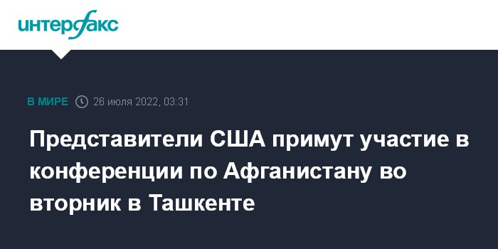 Москва. 26 июля. INTERFAX.RU - Специальный представитель США по Афганистану Томас Уэст и специальный посланник США по делам афганских женщин, девочек и прав человека Рина Амири примут участие в Международной конференции по Афганистану в Узбекистане, сообщает государственный департамент Соединенных Штатов.