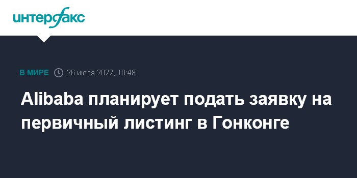 Alibaba планирует подать заявку на первичный листинг в Гонконге