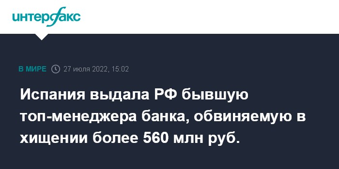 Испания выдала РФ бывшую топ-менеджера банка, обвиняемую в хищении более 560 млн руб.