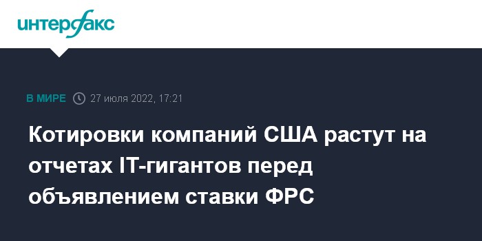 Котировки компаний США растут на отчетах IT-гигантов перед объявлением ставки ФРС