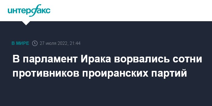Москва. 27 июля. INTERFAX.RU - Несколько сотен иракских демонстрантов ворвались в парламент в Багдаде, они протестуют против выдвижения на пост премьер-министр Ирака кандидата от поддерживаемых Ираном партий, сообщает AP.
