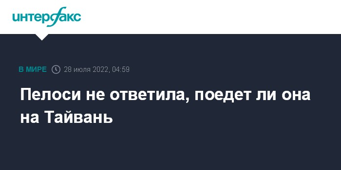 "Пелоси отказалась сообщить в среду какую-либо обновленную информацию о своих планах, касающихся визита на Тайвань, повторив, что она не обсуждает планы поездок, как это обычно бывает, по соображениям безопасности", - пишет АР.