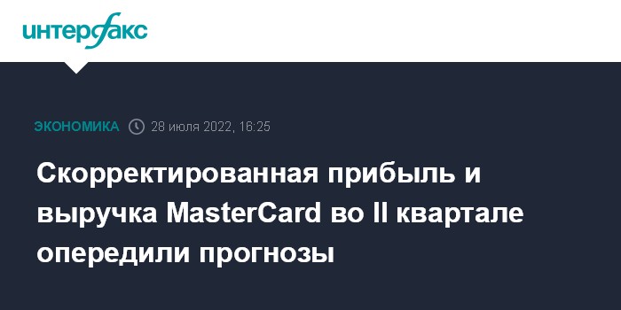 Москва. 28 июля. INTERFAX.RU - Американская MasterCard Inc., одна из крупнейших платежных систем в мире, во втором квартале 2022 года увеличила чистую и скорректированную прибыль, а также выручку, причем скорректированная прибыль и выручка оказались лучше прогнозов рынка.