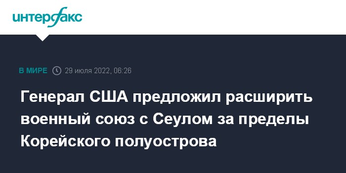 Генерал США предложил расширить военный союз с Сеулом за пределы Корейского полуострова