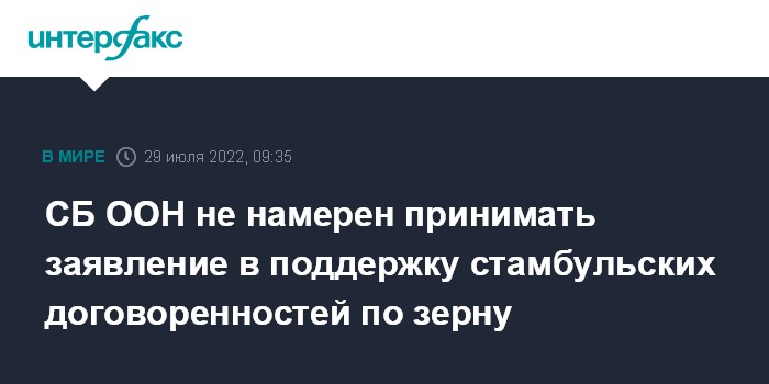 СБ ООН не намерен принимать заявление в поддержку стамбульских договоренностей по зерну