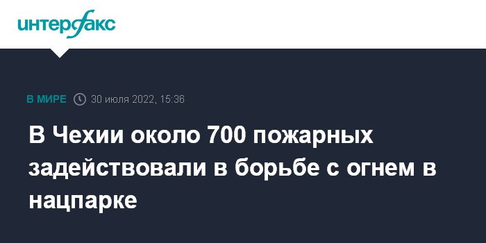 Москва. 30 июля. INTERFAX.RU - Сотрудники пожарной службы изо всех регионов Чехии прибыли в субботу для продолжения борьбы с природным пожаром, который уже неделю полыхает в Национальном парке "Чешская Швейцария" на границе с Германией, сообщает польский телеканал Polsat.