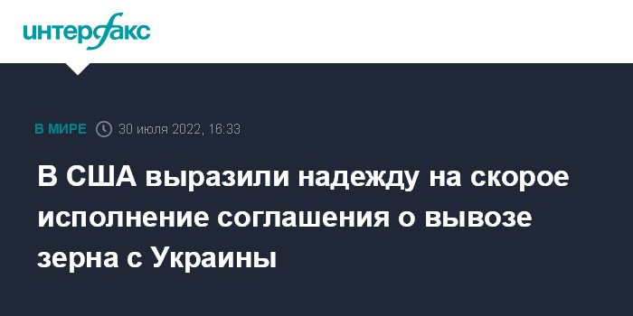 В США выразили надежду на скорое исполнение соглашения о вывозе зерна с Украины