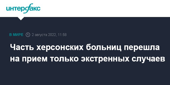 Москва. 2 августа. INTERFAX.RU - В районах Херсонской области, наиболее подверженных обстрелам, больницы перешли на оказание только неотложной помощи пациентам, а плановое лечение перевели в другие стационары, сообщил "Интерфаксу" начальник департамента здравоохранения временной администрации региона Вадим Ильмиев.