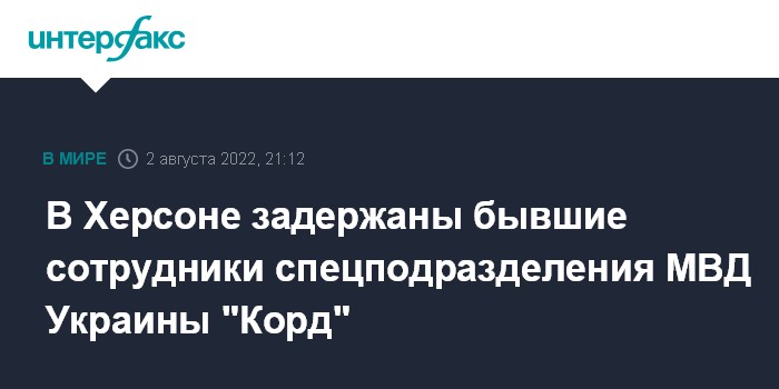 "В результате проведения оперативно-розыскных мероприятий спецслужбами в городе Херсон задержаны лица, ранее состоящие на службе в спецподразделении МВД Украины "Корд". В ходе обыска указанные лица сообщили о месте схрона", - сказал собеседник агентства.