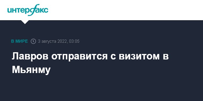 Москва. 3 августа. INTERFAX.RU - Глава МИД РФ Сергей Лавров в среду посетит с рабочим визитом Мьянму.