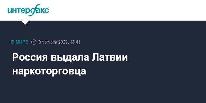 Москва. 3 августа. INTERFAX.RU - Россия экстрадирует в Латвию гражданина этой страны, осуждённого на родине за торговлю наркотиками, сообщила журналистам в среду официальный представитель МВД РФ Ирина Волк.