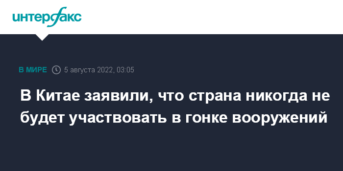 В Китае заявили, что страна никогда не будет участвовать в гонке вооружений