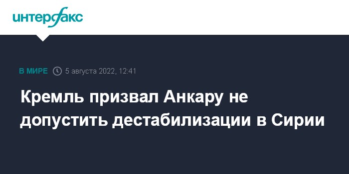 Кремль призвал Анкару не допустить дестабилизации в Сирии