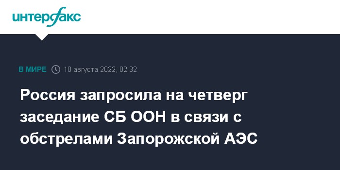 Ранее источник в российском постпредстве при ООН заявил "Интерфаксу", что на 11 августа Россия запросила проведение заседания Совбеза ООН в связи с обстрелами украинскими вооружёнными силами Запорожской АЭС.