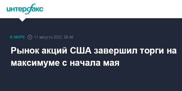 Москва. 11 августа. INTERFAX.RU - Рынок акций США завершил торги в среду на максимуме с начала мая, при этом Nasdaq Composite перешел в "бычью" фазу, сообщает MarketWatch.